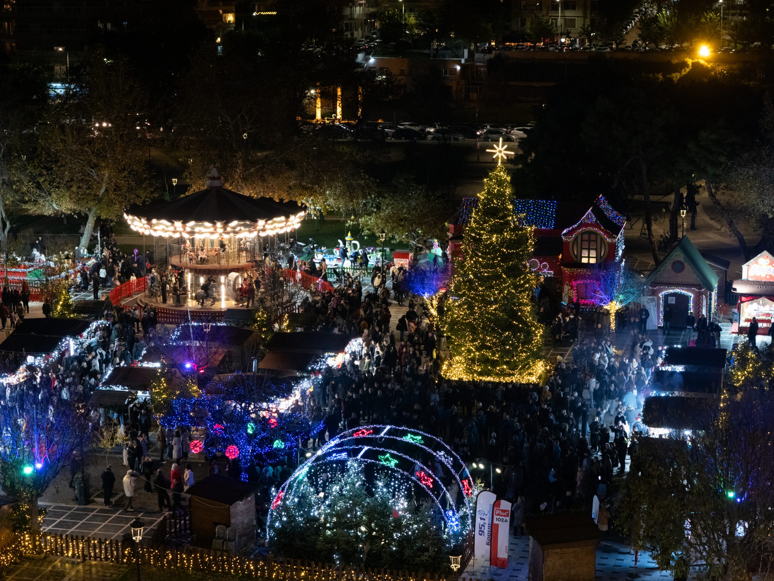 Θεσσαλονίκη: Φωταγωγήθηκε το Χριστουγεννιάτικο Δέντρο που στολίζει το «Χωριό των Μαγεμένων»