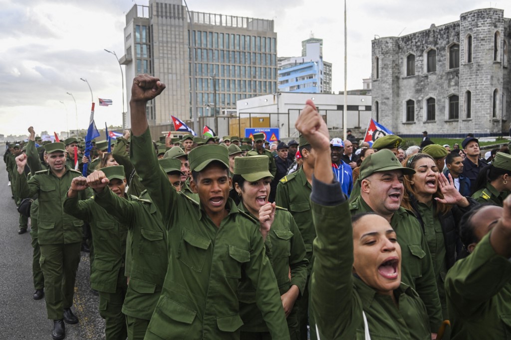 Ο πρόεδρος της Κούβας Μιγκέλ Ντίας Κανέλ, φορώντας στρατιωτική περιβολή και έχοντας γυρίσει την πλάτη του στο κτίριο της αμερικανικής πρεσβείας, κάλεσε τους Κουβανούς να παραμείνουν ενωμένοι μπροστά στις αμερικανικές πιέσεις.