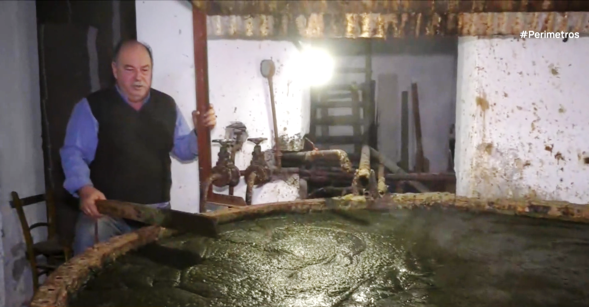 Ο δημοσιογράφος της ΕΡΤ Χάρης Ζαβουδάκης παρουσιάζει μία ατμομηχανή η οποία λειτουργεί ξανά, δίνοντας «ζωή» στο ιστορικό εργοστάσιο σαπωνοποιίας του νησιού.