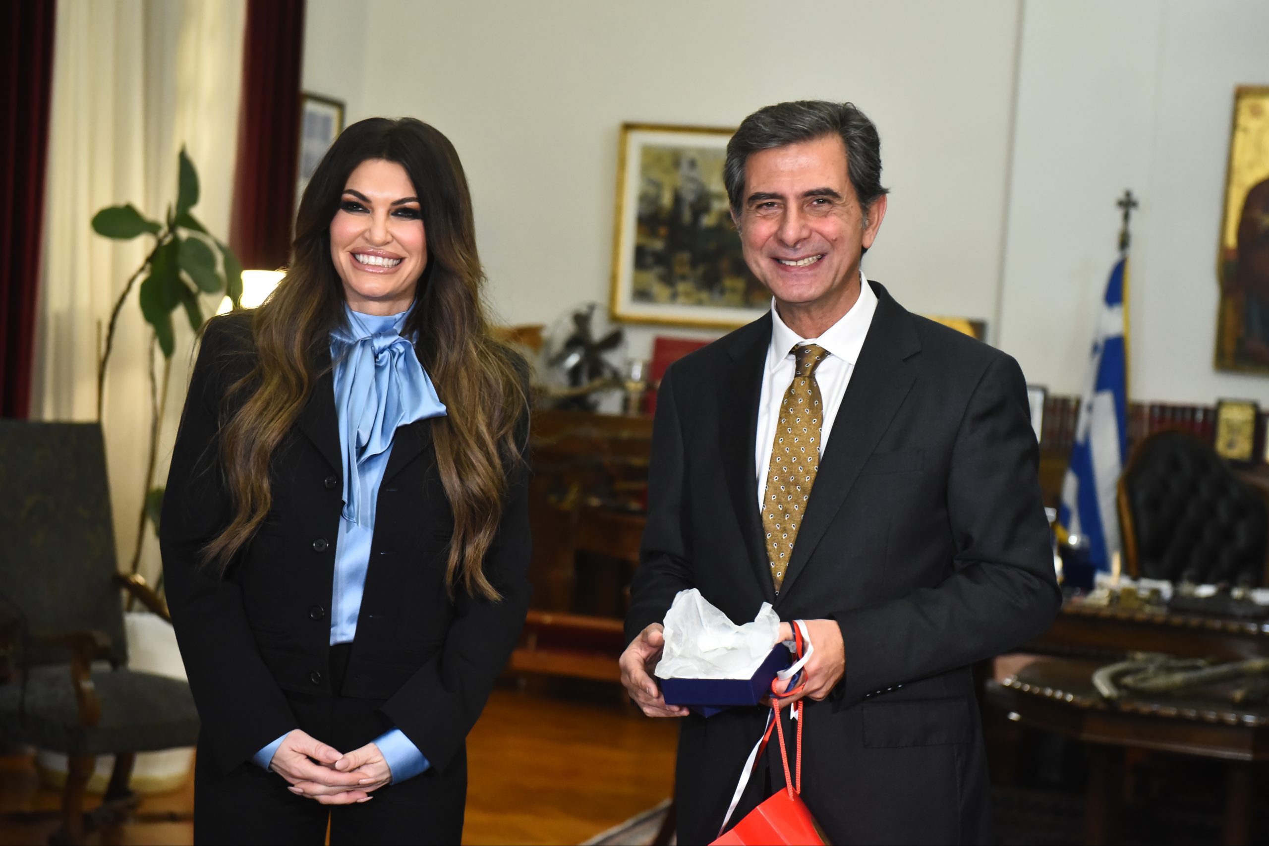 Η πρέσβης των ΗΠΑ δώρισε στον κ. Γκιουλέκα ένα κρυστάλλινο επιτραπέζιο ρολόι με τη σφραγίδα του Στέιτ Ντιπάρτμεντ των ΗΠΑ.