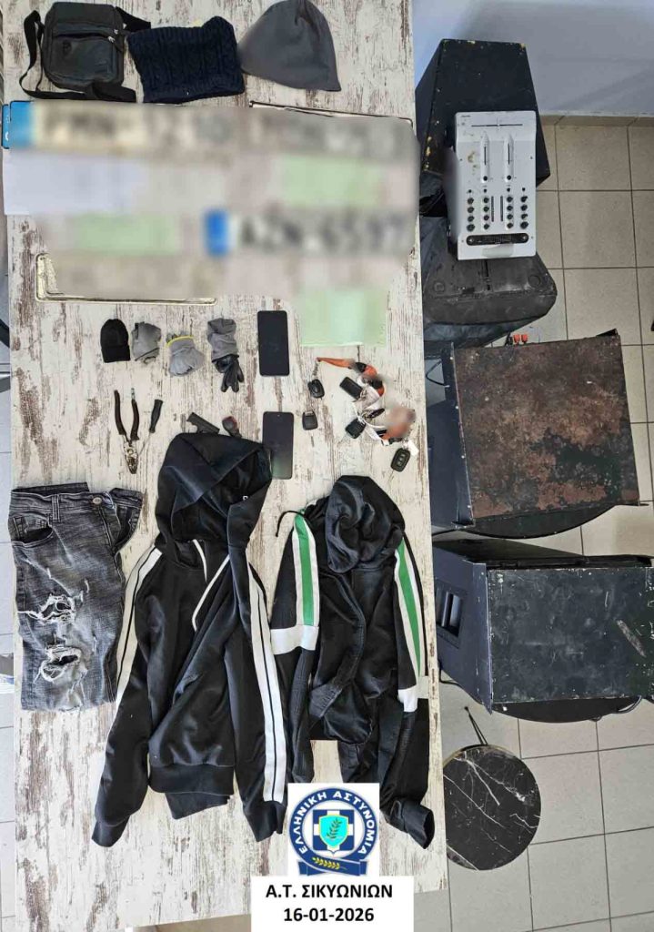 Σε έρευνες που έγιναν στις οικίες των συλληφθέντων, βρέθηκαν συνολικά και κατασχέθηκαν: 4 οχήματα, ως μέσα τέλεσης αξιόποινων πράξεων, κινητά τηλέφωνα, διαρρηκτικά εργαλεία, είδη ένδυσης και αντικείμενα, το νόμιμο κατοχής των οποίων εξετάζεται. Οι συλληφθέντες θα οδηγηθούν αρμοδίως, ενώ η αστυνομική έρευνα και το προανακριτικό έργο, συνεχίζονται από το αστυνομικό τμήμα Σικυωνίων, για την εξακρίβωση της τυχόν συμμετοχής τους σε διάπραξη και άλλων παρόμοιων αδικημάτων.