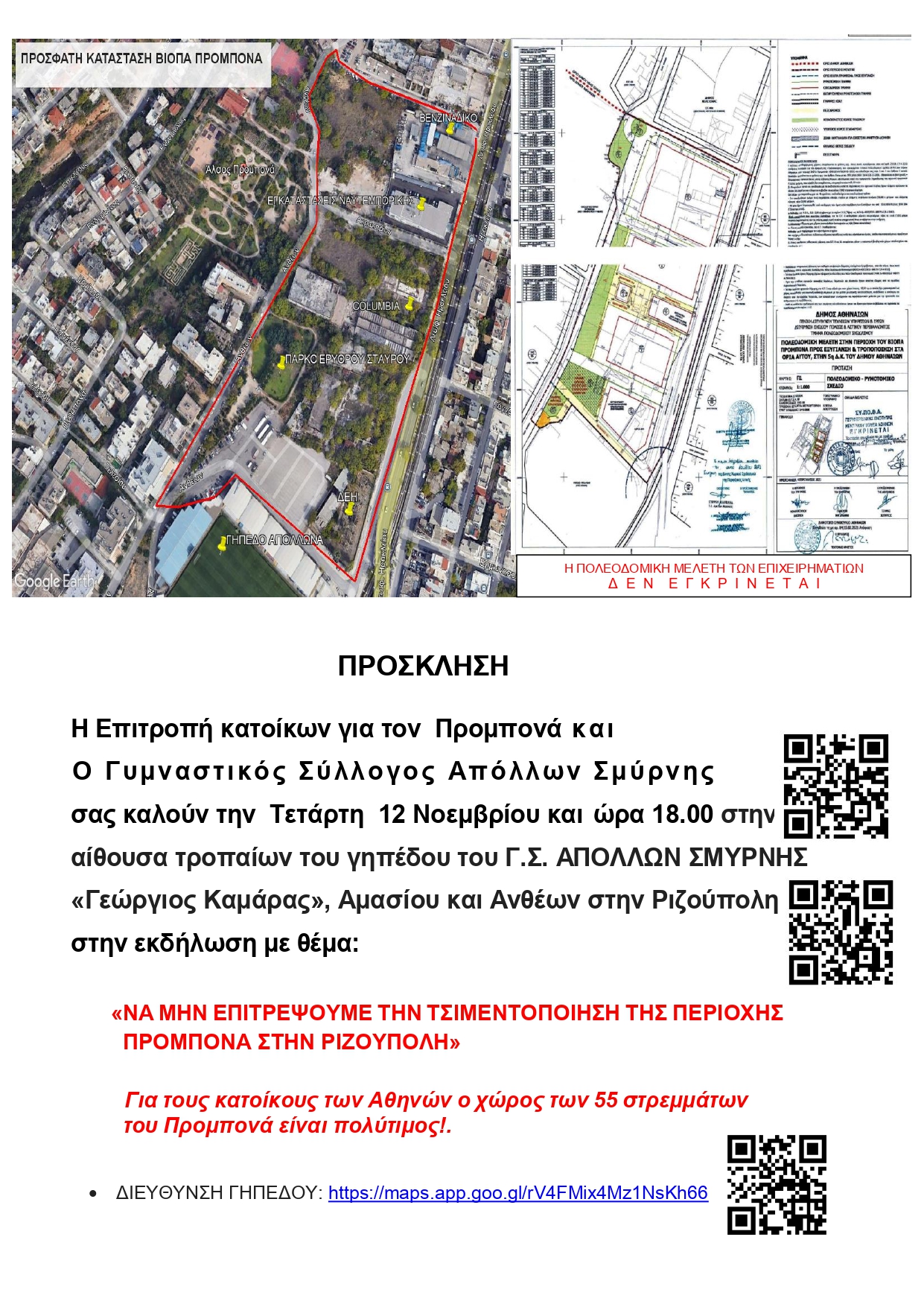 Σήμερα η περιοχή του Προμπονά, βρέθηκε στο μάτι του κυκλώνα με σχέδιο δόμησης για μεγαθήρια στους χώρους ερειπωμένων εργοστασίων, πιο γνωστή η «Κολούμπια», αλλά μετά από μεγάλη δραστηριότητα των κατοίκων της περιοχής, φαίνεται ότι ο άμεσος κίνδυνος έχει περάσει ή για να ακριβολογούμε, βρίσκεται σε σχετική ύφεση και απαιτεί παρακολούθηση, με την 26η Νοεμβρίου 2025 να είναι η ημερομηνία που θα συζητηθεί η προσφυγή των κατοίκων στο ΣΤΕ.